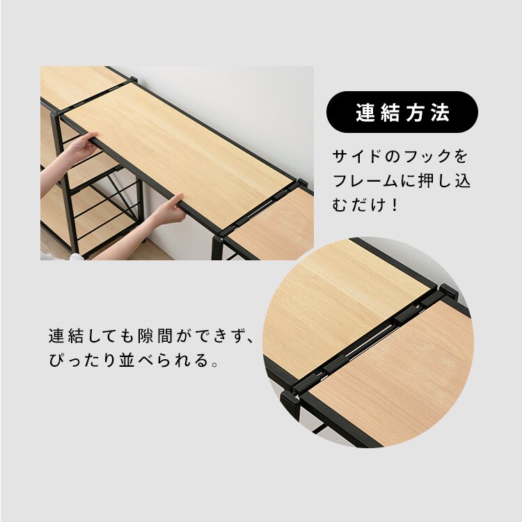- 組み立て簡単 連結スチールラック|76cm|3段|ナチュラルオーク