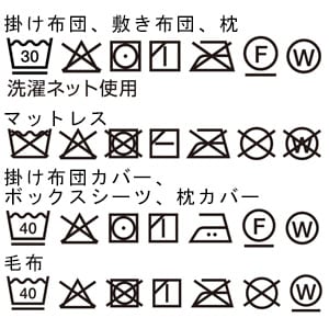 掛け布団、敷き布団、毛布、枕、掛け布団カバー、ボックスシーツ、枕カバー、はご自宅の洗濯機で洗えます(洗濯ネットの使用をおすすめします)。