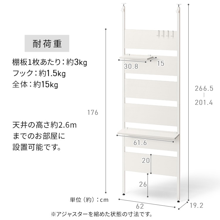 幅約62×奥行約19.2×高さ約201.4〜266.5