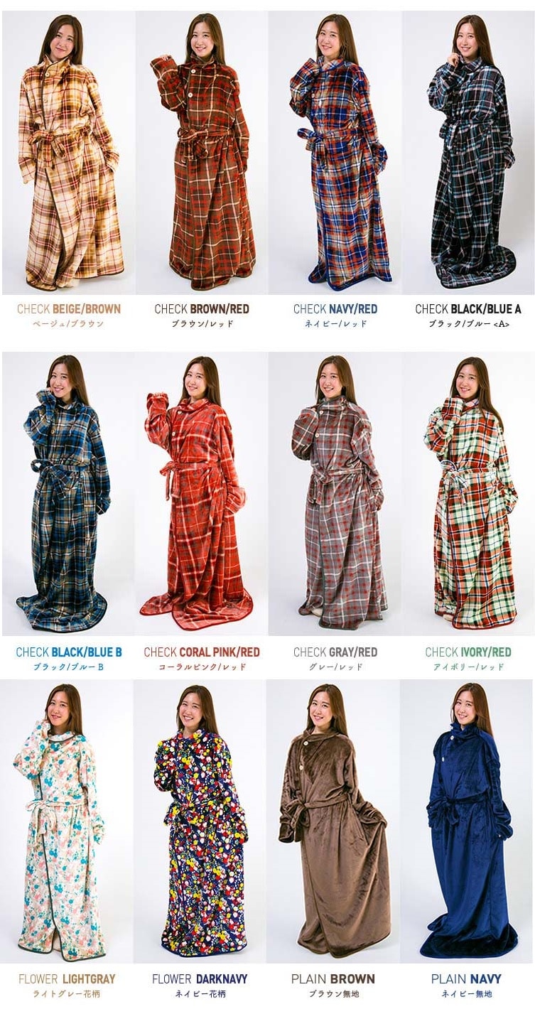 - fondan着る毛布|Lサイズチェック/ブラック×ブルー
