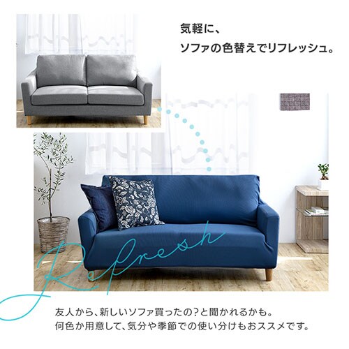 ソファにぴったりフィットするソファカバー。優れたストレッチ性で、お手持ちのソファにぴったりフィットします。とソファにかぶせるだけなので、模様替えもラクラク!