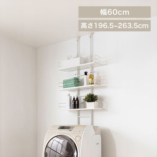 ほとんどの洗濯機に対応できる、突っ張り式ランドリーラック。